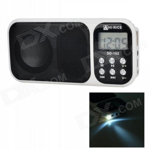 Hi-Rice SD-102 Mini Portable 1.2" Screen Media Player Speaker w/ FM / TF - White + Black