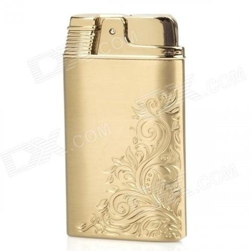 010 Elegant Flower Pattern Metal Butane Gas Lighter - Golden