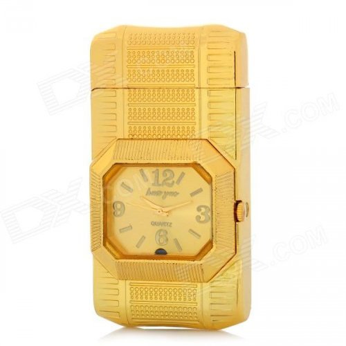 2-in-1 LED Quartz Watch Style Windproof Metal Butane Jet Lighter - Golden (1 x 377)