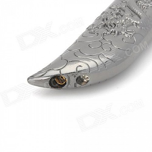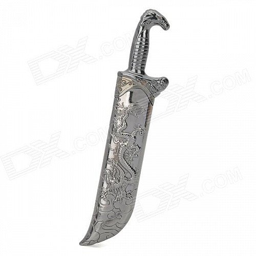 309 Dragon Pattern Curved Sword Style Windproof Butane Jet Torch Lighter - Silver Black