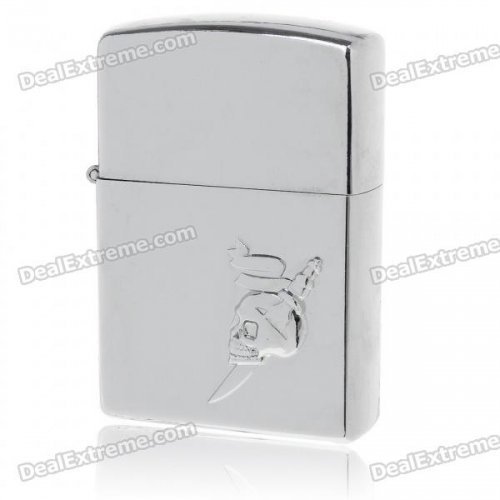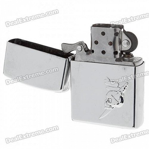 3D Skull & Sword Pattern Fuel Lighter - Silver