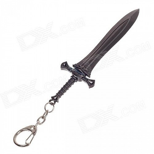 Animation Warrior Weapons Zinc Alloy Sword Model Toy w/ Keyring - Bright Black
