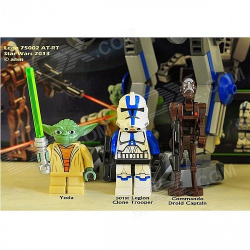 - Use the AT-RTs swiveling laser cannon to attack the Droid! Take your blasters out of the AT-RTs weapon storage compartment and open fire! Recreate your favorite scenes from the Star Wars: The Clone Wars animated TV series! Includes 3 minifigures with assorted weapons: Clone Wars edition Yoda, 501st Clone Trooper and Commando Droid captain.