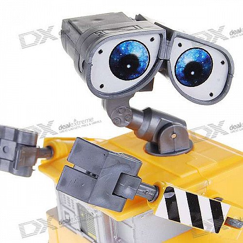 The Wall-E Robot display machine toy is the best gift to your friends or children. There is an inertia driver device in the bottom of the toy. Just sliding forward a short distance and the robot can make move performance. The head can rotate 360 degree and the arms can optional twisted.