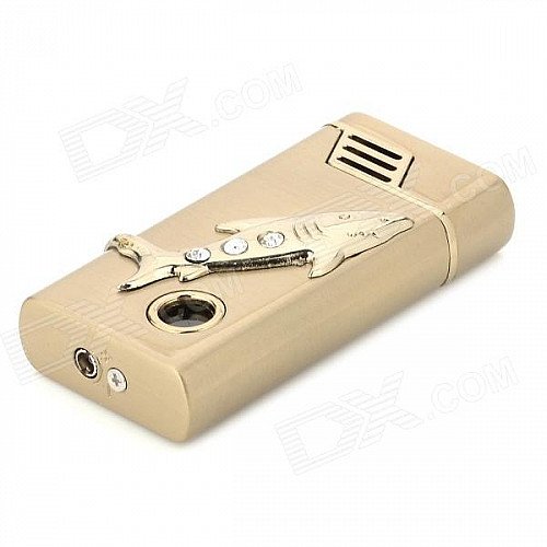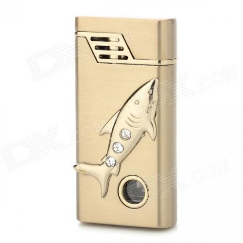 AOMAI AM-136 Rhinestone Fish Pattern Windproof Butane Gas Jet Lighter - Golden