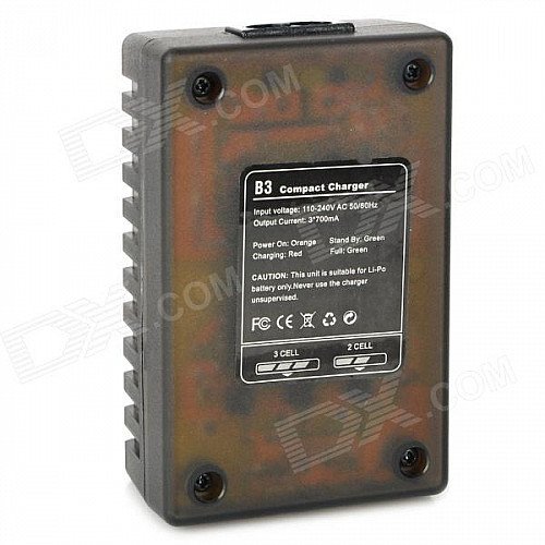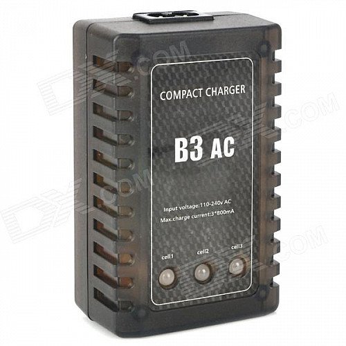 B3AC 7.4V/11.1V 2S/3S LiPo Balance Charger - Black (2-Flat-Pin Plug)