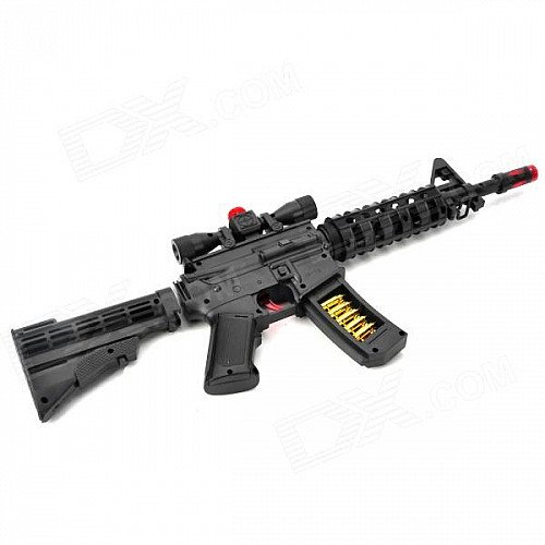 Machine Gun Toy with Flash Light & Firing Sound Effects - Black (4 x AA)