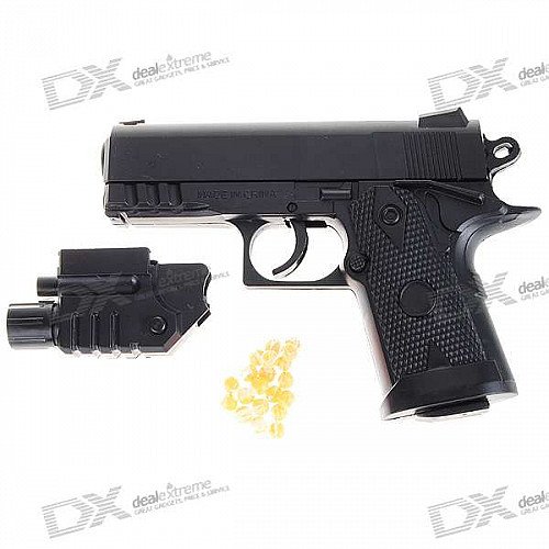 Mini 6mm Pistol Spring-load BB Gun Toy with Laser Sight and Blue Light Flashlight