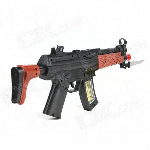 Powered by 3 x AA batteries (not included), pull the trigger, that the battle sounds and dazzling lights.