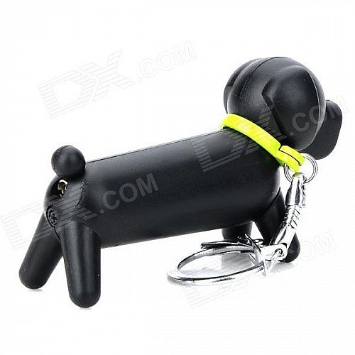 Cartoon Dog Style Red Flame Butane Lighter w/ Keychain - Black + Green