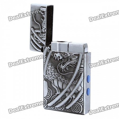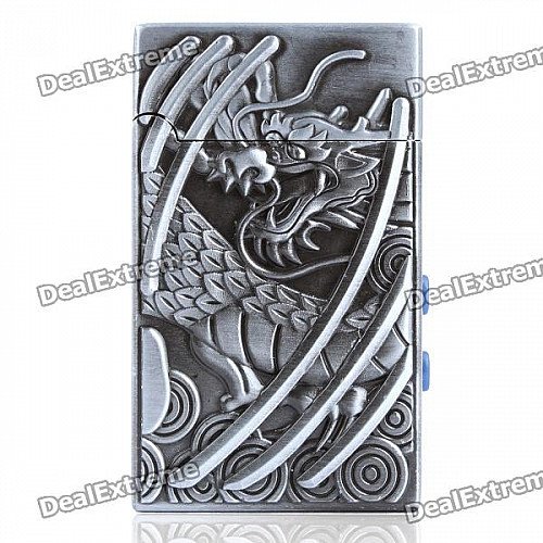 Cool Dragon Pattern Butane Lighter with White 1-LED Light & Money Detector - Silver Grey (1 x AC3)