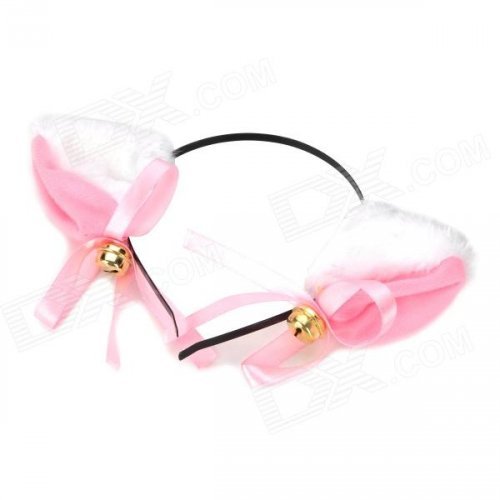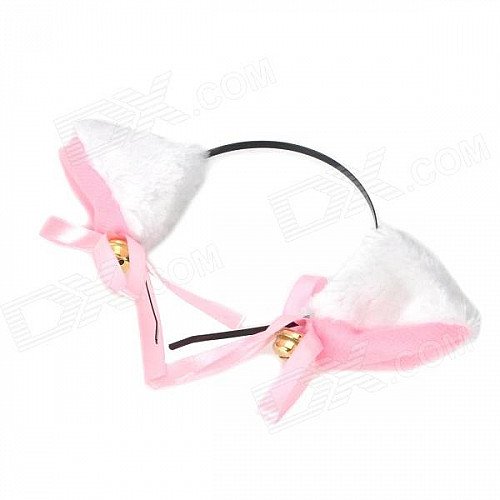 Cute Cat Ears Style Plush + Iron Headband Hair Band - White + Pink + Black