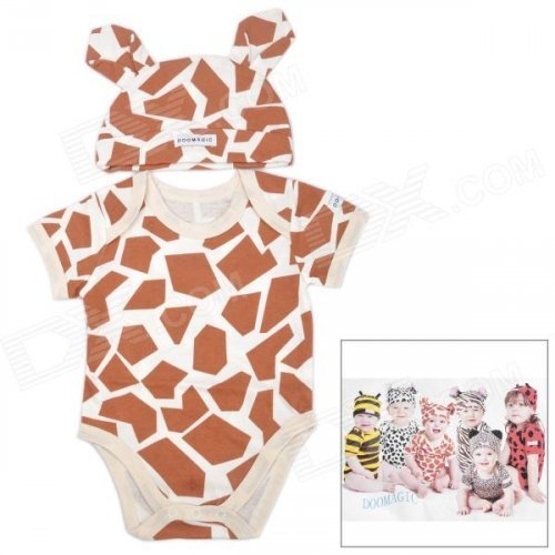 DOOMAGIC Giraffe Style Costume w/ Hat for Children - White + Brown
