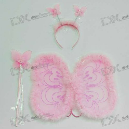 Halloween Butterfly Wings + Head Band + Wand - Pink (3-Piece Set)