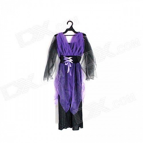 Halloween Costumes Children Gauze Witch Suit - Black + Purple (Size XL)