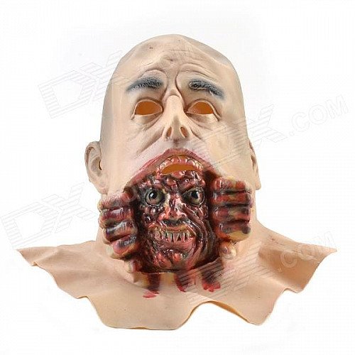 Halloween Natural Rubber Bald Ghost Mask - Red + White