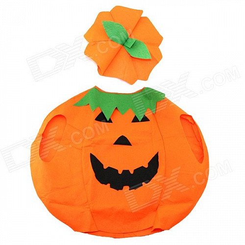 Halloween Party Show Costume Children's Pumpkin Clothes Hat Suit - Orange + Green + Black (L)