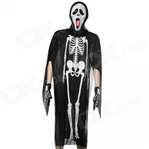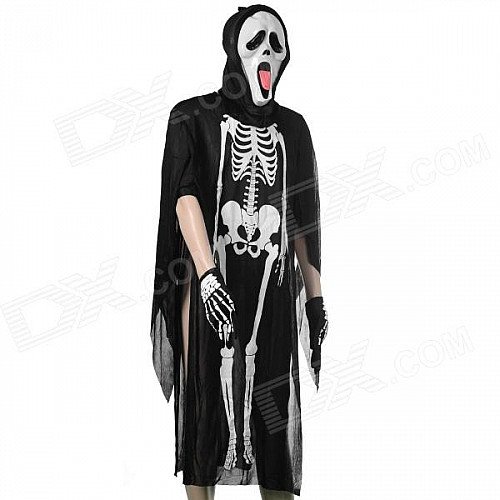 Halloween Skeleton Style Cosplay Costume + Face Mask + Gloves Set - Black + White