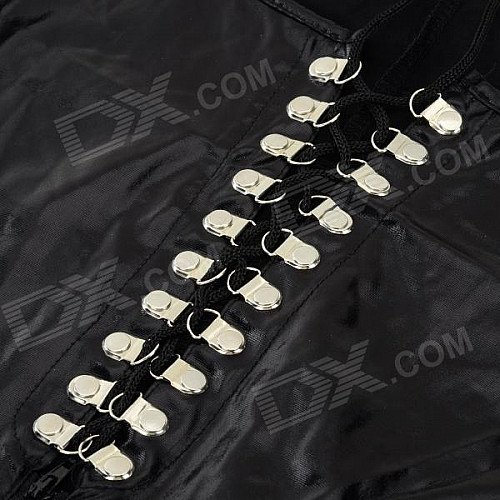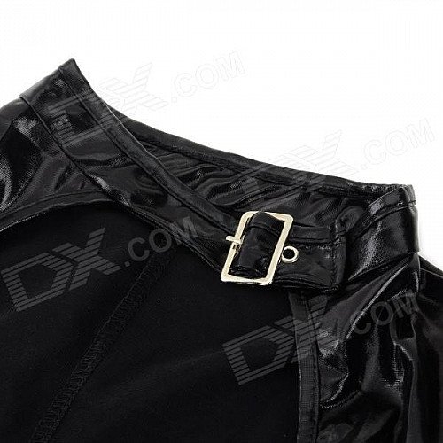 LT62 Women's Sexy Elastic Low-cut Zipper Back Patent Leather Costume Suit - Black