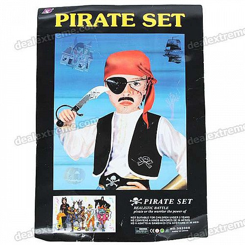 - Set of 6 cool pirate costume, included: headband + eyeshade + knife + vest + waistband + small pouch
