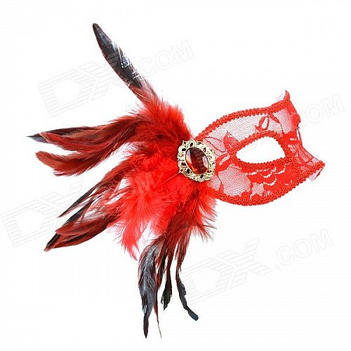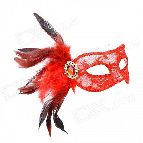 Stylish Sexy Crystal + Feather Decorated Lace Mask for Women - Red