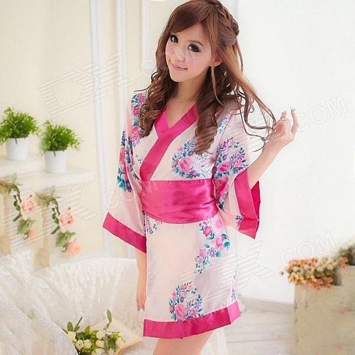 Women's Fashionable Sexy Kimono Style Sleep Dress Set - Red