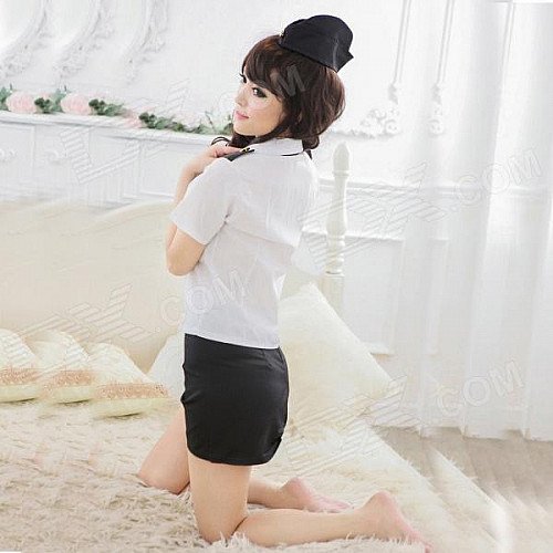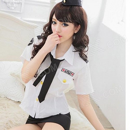 Women's Fashionable Sexy Police Style Role Play Sleep Dress Set - White + Black