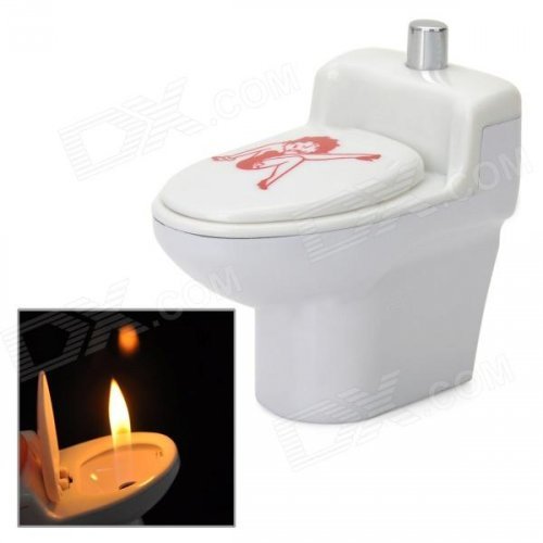 Creative Closestool Shape Yellow Flame Butane Gas Lighter - White