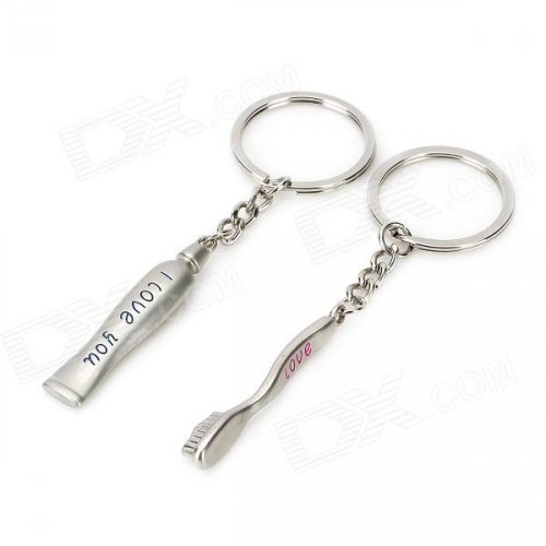 Creative Toothpaste and Toothbrush Style Zinc Alloy Keychain - Silver (2 PCS)