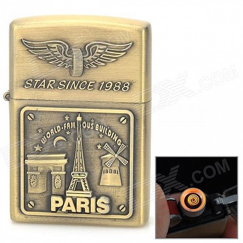 Creative USB Rechargeable Windproof Zinc Alloy Electronic Cigarette Lighter - Antique Golden