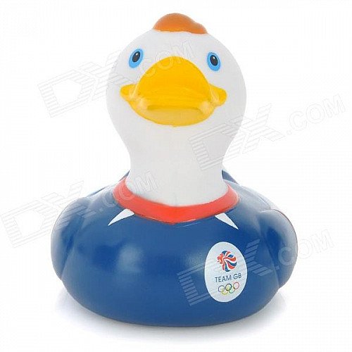 121205 Team GB Clothes Pattern Funny Floating PVC Duck Bath Toy for Kids - Sapphire Blue + White