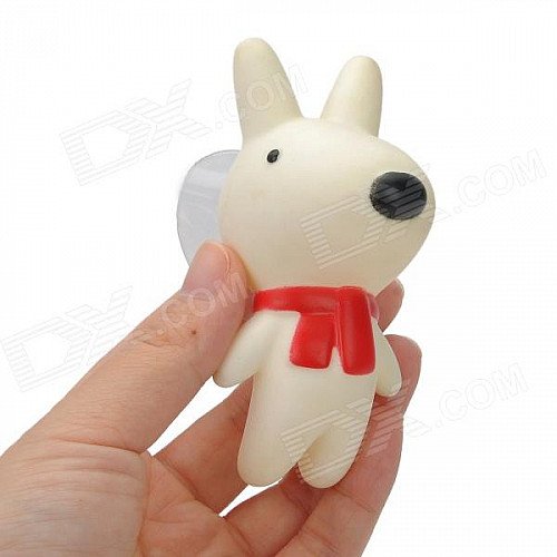 985 Plastic Cartoon Dog Doll w/ Suction Cup - White + Black + Red