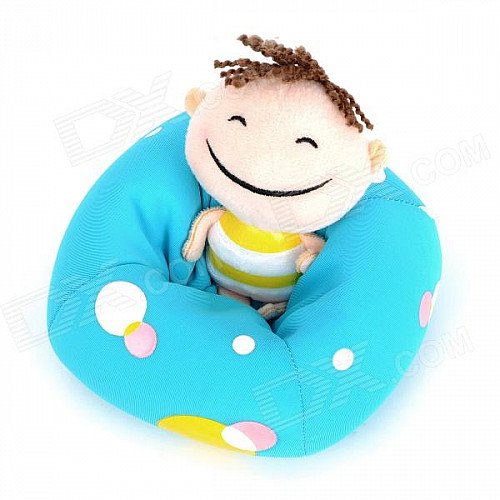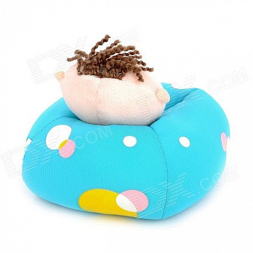 Cute Boy Figure Doll Design Foam Particles Filling Cell Phone Holder - Blue