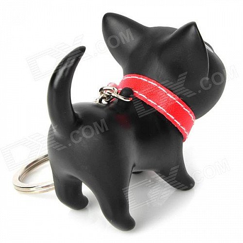 Cute Cartoon Cat Toy w/ 360 Degrees Rotating Head & Keychain - Black
