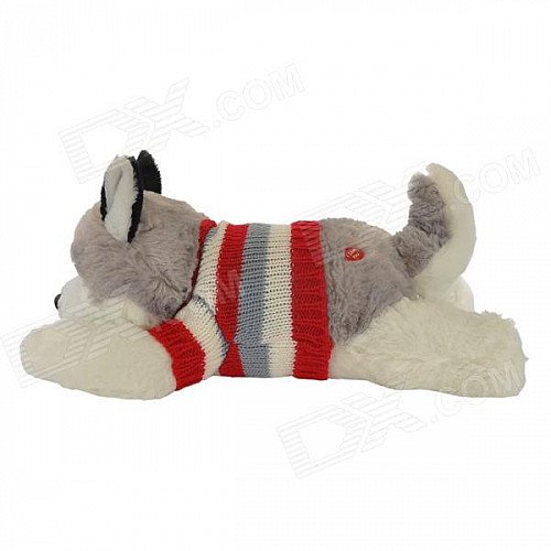 Cute Husky Grovel Dog Soft Plush Toy w/ Knitting Sweater - Grey + White + Red