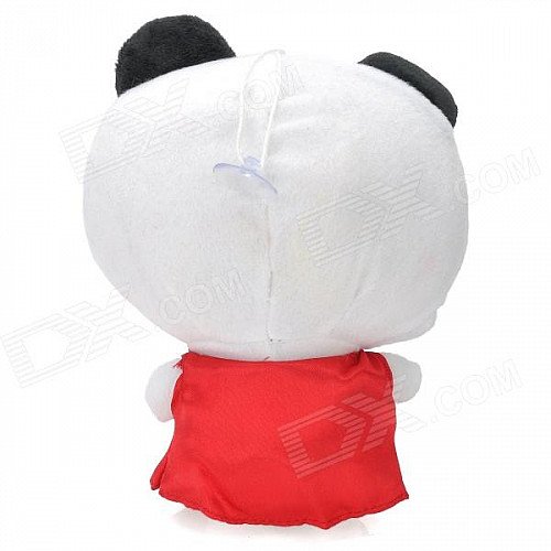 Cute Red Dress Panda Short Plush + PP Cotton Car Decoration Doll w/ Suction Cup - White