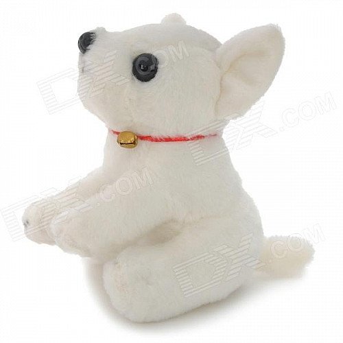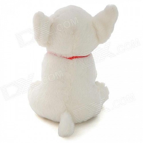 Cute Sitting Dog Shaped Short Plush Toy w/ Ring - White