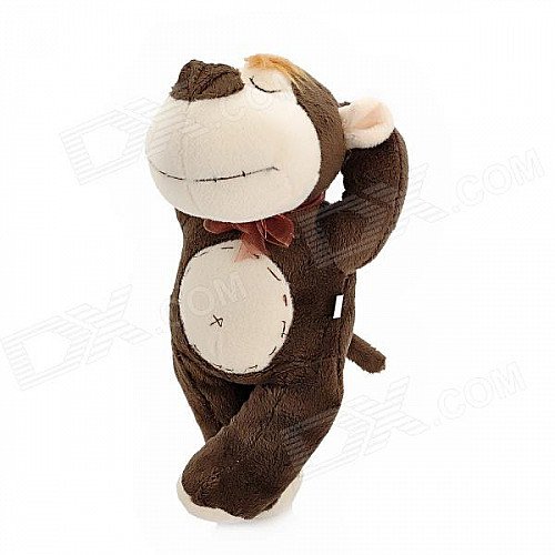 Cute Sleeping Short Plush Pongo Satyrus Doll Toy w/ Bowknot / Suction Cup - Deep Brown