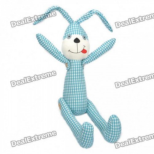 Stylish Fabric Art Rabbit Style Doll Toy - Blue + White Lattice (Posture Adjustable)