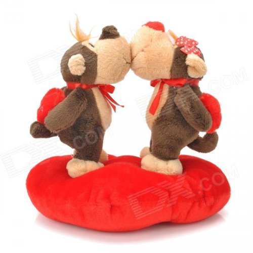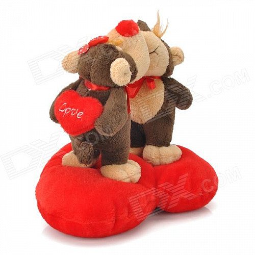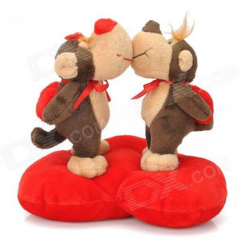 Sweat Kiss Monkey Couple Doll Valentines Gift - Red + Brown + Beige