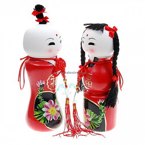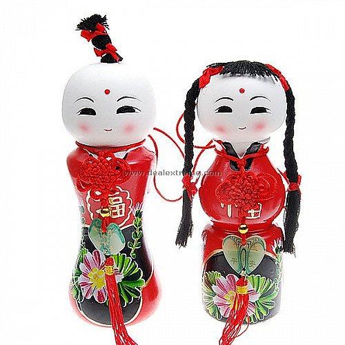 Traditional Ceramic Fortune Blessing Dolls (2-Piece Set)