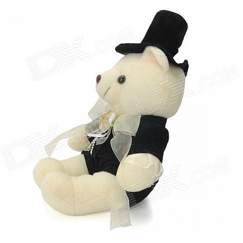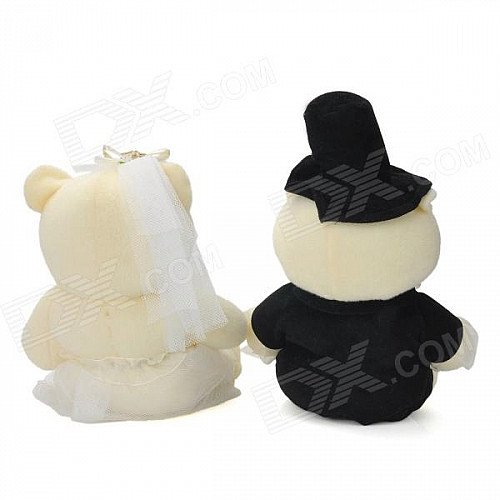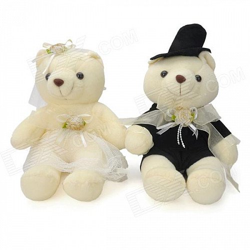 Wedding Bears Shaped Plush Toy - Beige + Black (Pair)