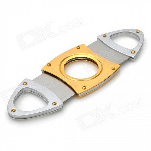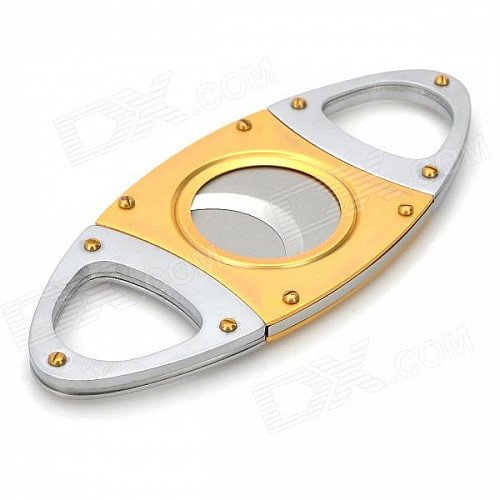 Dual Blades Stainless Steel Pull Type Pocket Cigar Cutter Knife - Golden + Silver