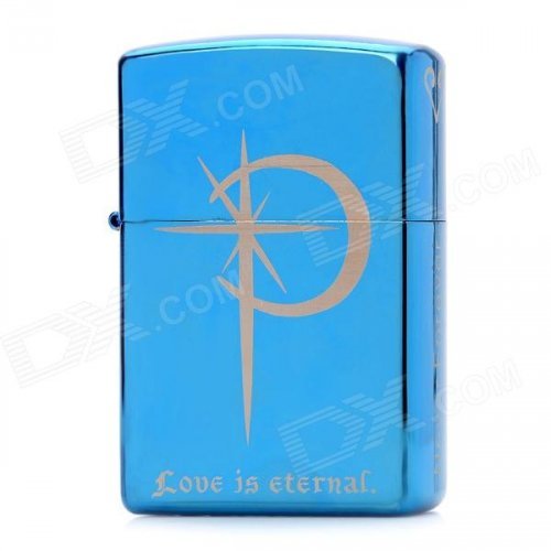EARTH Love is Eternal Pattern Windproof Zinc Alloy Kerosene Oil Lighter - Blue