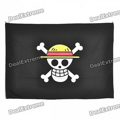 One Piece Luffy Skull Jolly Roger Flag (Black + White + Yellow)