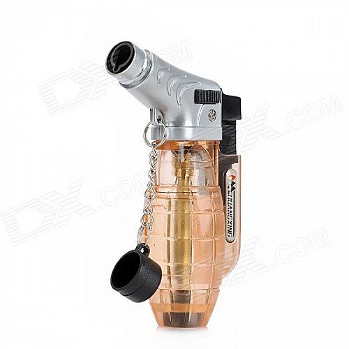 FS026 1300 Centigrade Windproof Blue Flame Butane Jet Torch Lighter - Translucent Orange + Silver