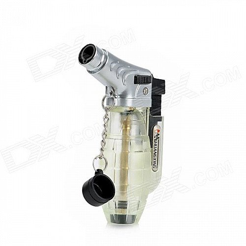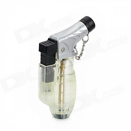 FS026 1300 Centigrade Windproof Blue Flame Butane Jet Torch Lighter - Translucent White + Silver