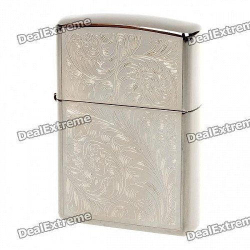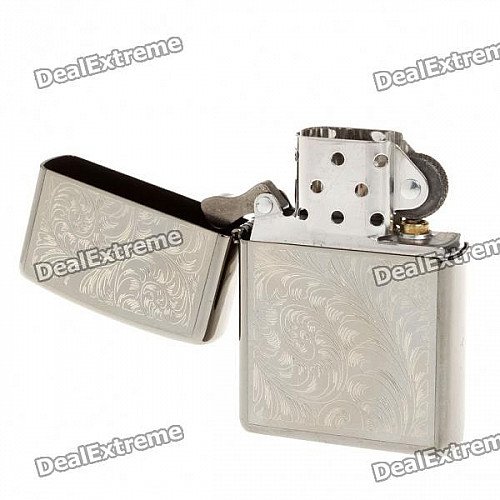 Genuine Zippo Flowers Pattern Fuel Copper Fluid Lighter - Silver