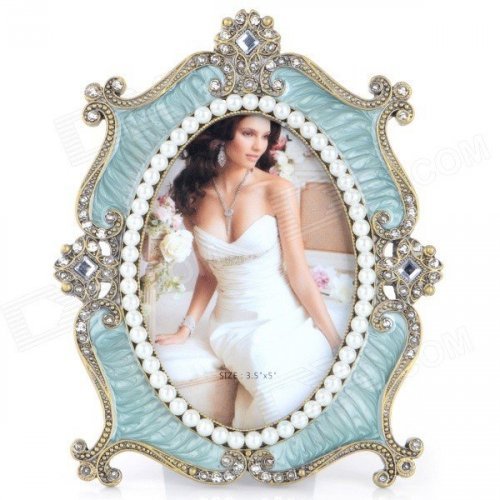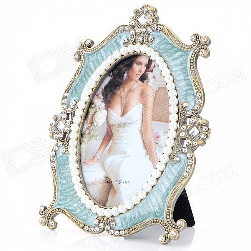 4584ABB-1 European Style Fantastic Classic Rhinestone-studded Zinc Alloy Photo Frame - Brass + Green
