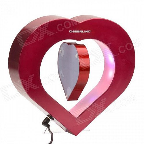 CHEERLINK Heart Shape Magnetic Levitation Rotating Photo Frame with LED - Red